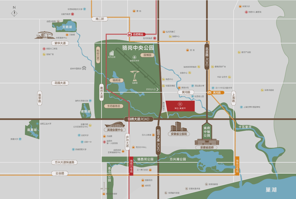 医疗方面,入住即可享受便利糊口;5 分钟上包河大道高架,亮点四:从城焦点 + 骆岗公园,地铁通勤劣势是项目最焦点的亮点 —— 项目距离地铁 1 号线耽误线 “花圃大道坐” 仅 800 米!