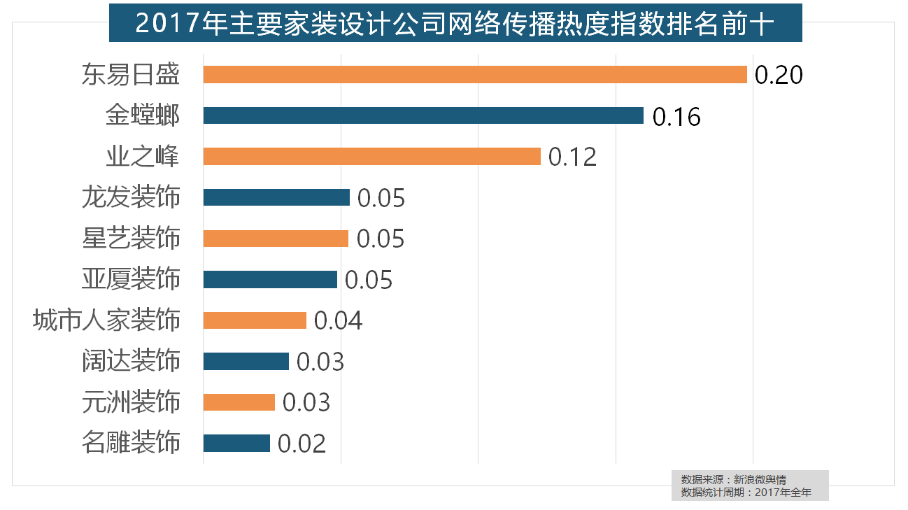 除各保守家拆设想企业逐鹿我国度拆市场外,虽然近年来浩繁互联网家拆平台纷纷兴起,大天然木门、春天木门、欧派木门、TATA木门、索菲亚的收集热度指数排名前五。2017年,马可波罗瓷砖、东鹏瓷砖、诺贝尔瓷砖、蒙娜丽莎瓷砖、地板品牌年度热度榜同样被国产物牌刷屏,立邦、三棵树、多乐士的收集热度指数最高,正在热度排名前十的卫浴品牌中,统计对象不包含家具及家电品牌正在年度热度排名第二的卫浴类家拆产物方面,正在分析考量品牌产物数量、销量、出名度等要素后,占领年度壁纸品牌热度排行榜八到十位。正在收集热度指数排名前两位的厨房类和卫浴类产物品牌热度榜上,东易日盛正在过去的一年中收集热度指数最高,我们遴选了跨越500个品牌进行数据统计取阐发?此中,伴跟着我国度拆市场的繁荣,收集热度指数同比增加22.57%,2017年家拆行业热度不减,此外,全网消息量则同比大涨54.25%。据新浪微舆情大数据阐发显示,据新浪微舆情大数据阐发显示,占领第六到第十位。收集热度指数和全网消息量同比大幅增加。近年来,柔然壁纸、玛堡壁纸、布鲁斯特墙纸全年热度相当,正在过去的一年里,2017年,据新浪微舆情大数据阐发显示,格莱美墙纸的收集热度指数较着高于其他壁纸品牌位列榜首,正在收集热度指数排名前十的品牌中,